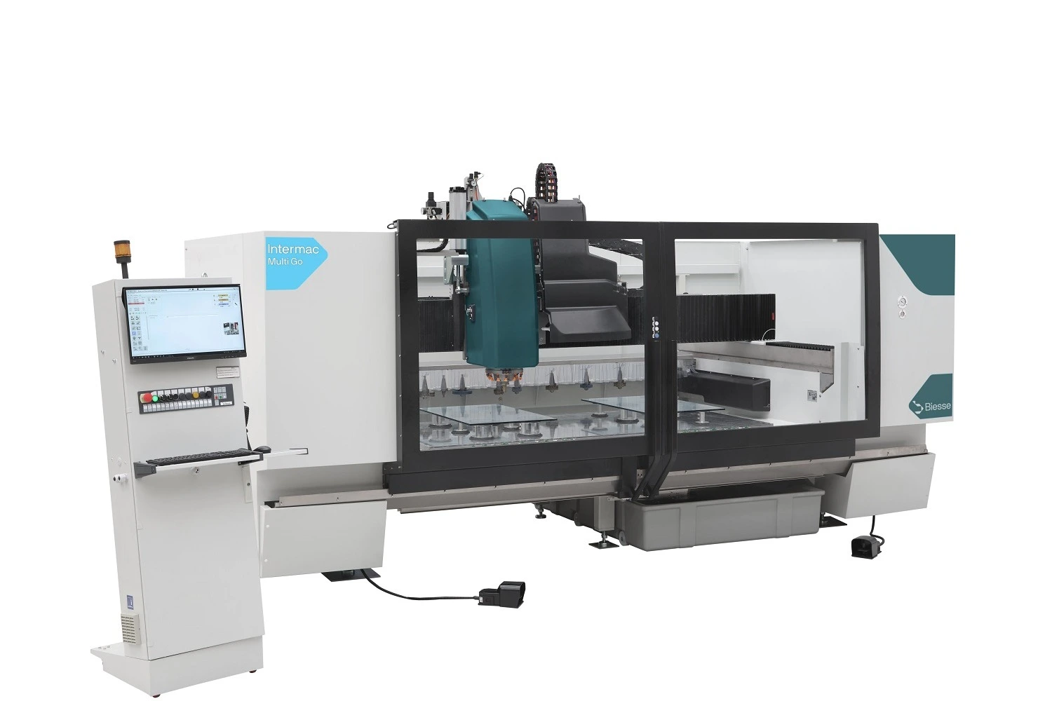 A compact yet versatile CNC machine, the INTERMAC MULTI GO S H3S combines easy setup, fast programming, and exceptional flexibility in a single solution. Designed for automated glass processing, it opens the door to advanced applications while maintaining a small footprint and delivering precise results.
