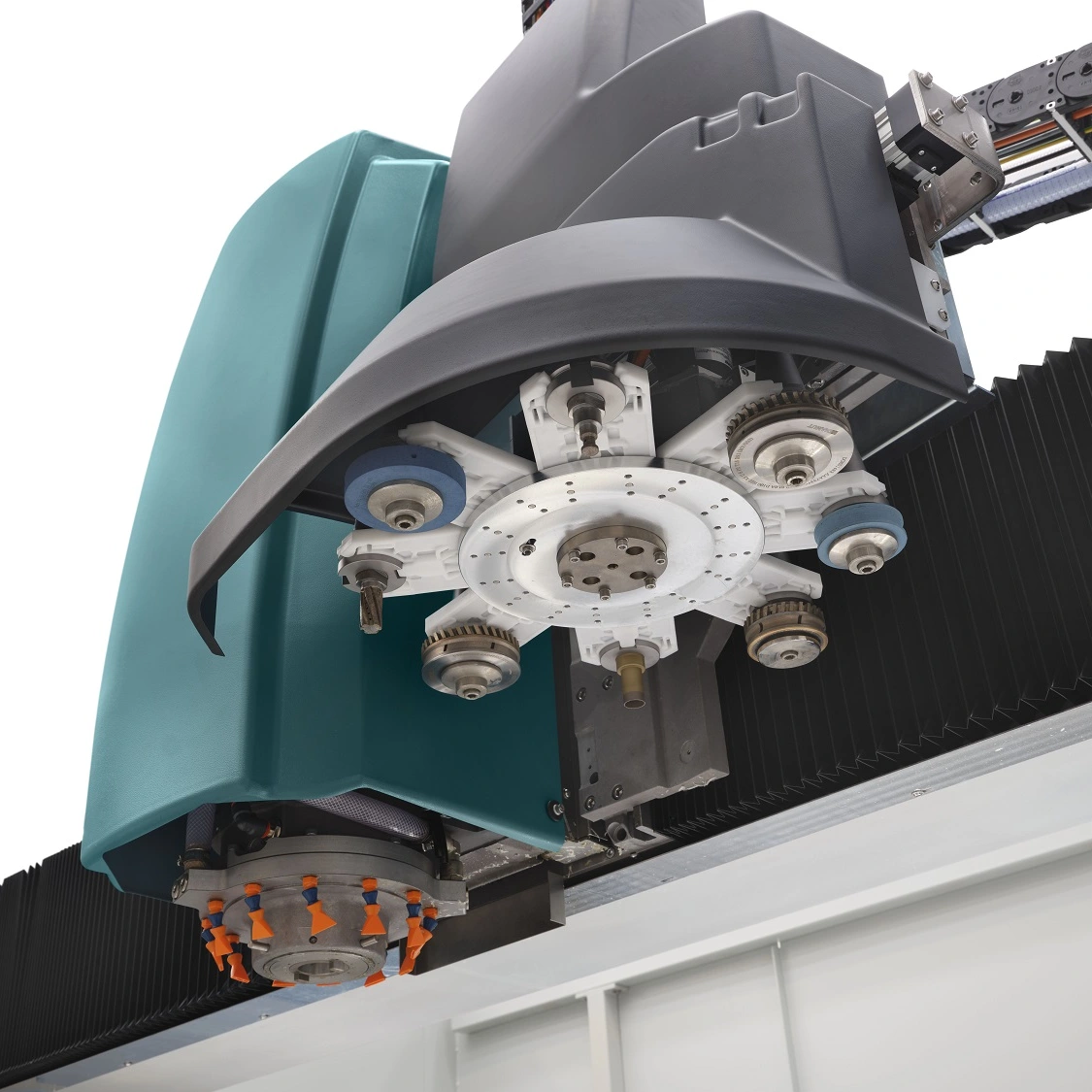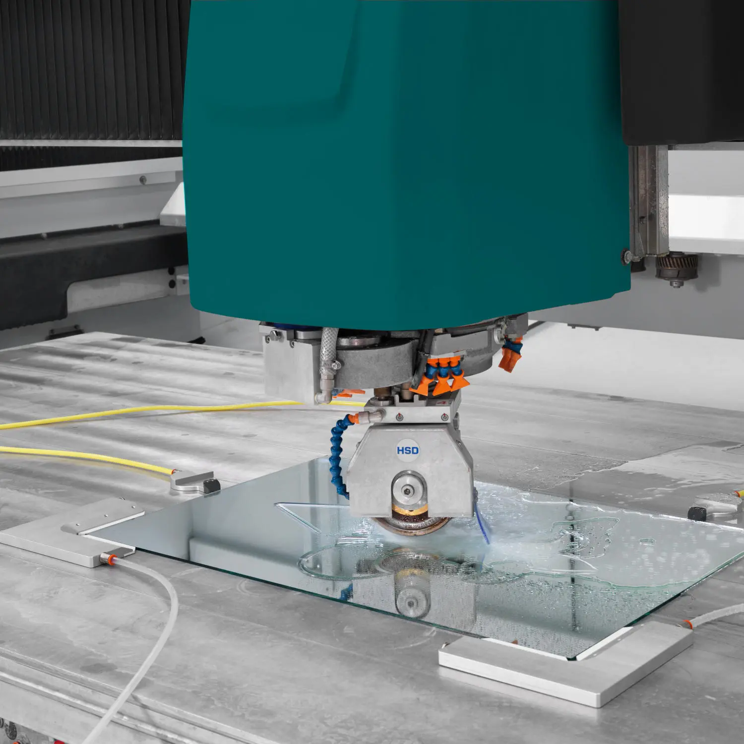 Equipped for edgeworks and optional V-grooving with a fourth axis, the machine ensures flawless 4-axis interpolation for precise, high-quality results. Head-mounted tool holders allow quick tool changes in seconds, while automated tooling setup and redressing systems maintain sharp, ready-to-use tools without manual intervention, keeping machining time as the primary focus.