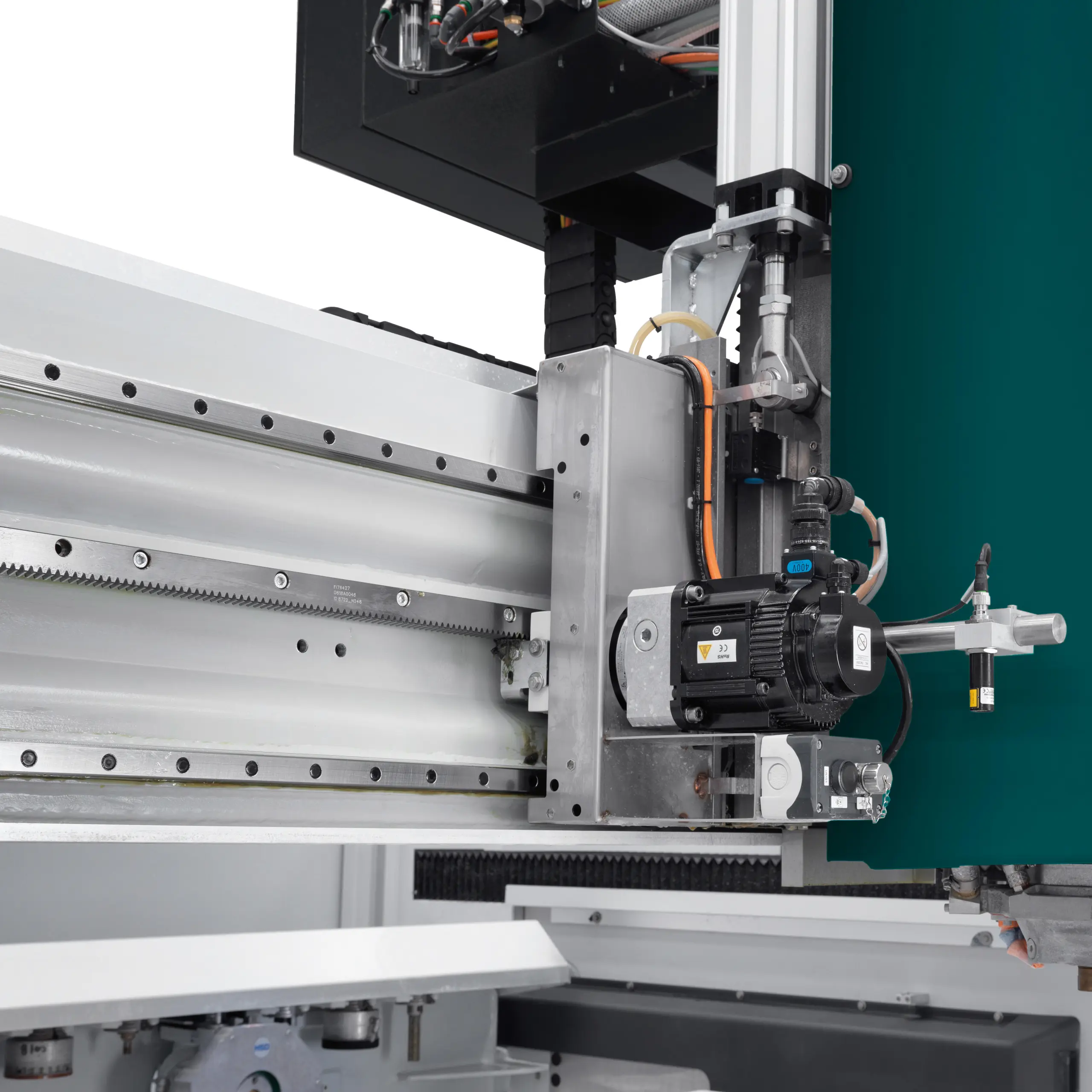 Engineered for durability, the machine features linear guide racks for smooth, fast motion, Yaskawa motors for precise performance, and a pneumatic compensation piston for accurate vertical movement. These mechanical solutions ensure long-term reliability, consistent quality, and precise execution in every glass processing operation.