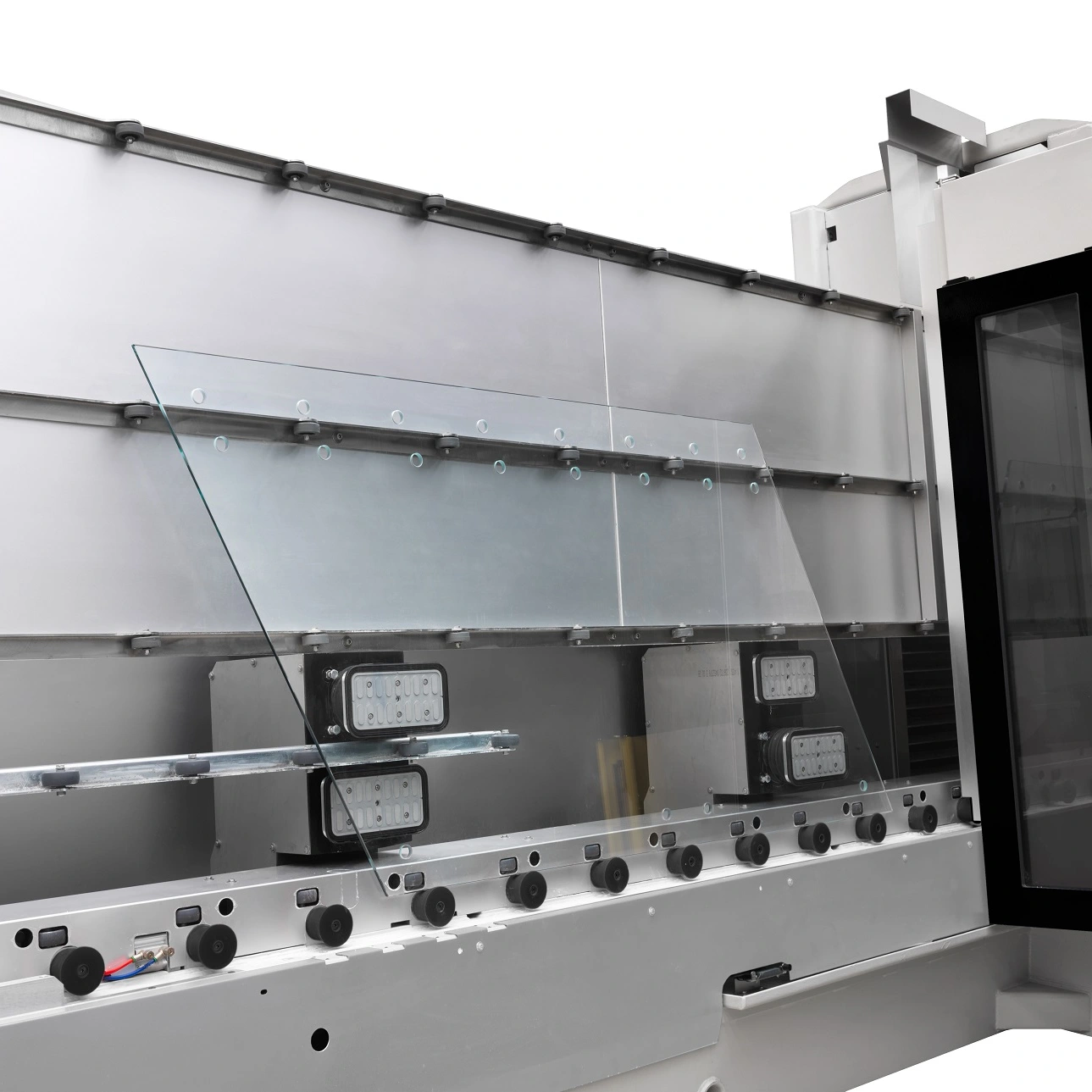 The machine eliminates manual setup entirely. Glass is moved via carriages through the head section, with all axes interpolated by the NC system for zero positioning time and exceptional accuracy. Its one-block chassis delivers maximum stability, eliminates vibrations under high stress, and ensures long-term reliability, while simplifying installation and maintenance.